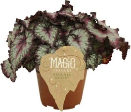 Begonia’s zijn opvallend door hun uitbundige bloei, maar er zijn ook Begonia’s die speciaal gekweekt worden vanwege hun mooie bladeren. Door innovatie van het assortiment heeft de plant zijn oubollige imago van zich afgeschud en heeft hij een plaatsje veroverd tot in de modernste interieurs van de 21e eeuw. De Begonia rex (MC) ‘Salsa’ is een bladbegonia, met opvallend blad wat glinstert in het licht. De sierwaarde van deze Begonia zit in het blad, de bloemetjes zijn in dit geval bijzaak. Als je bloemetjes ziet verschijnen kun je deze het best eraf knijpen, zo zorg je ervoor dat de Begonia al zijn energie in zijn mooie blad stopt.Begonia rex (MC) ‘Odissi’ is een bladbegonia, met opvallend rood en groen blad wat glinstert in het licht. De sierwaarde van deze Begonia zit in het blad, de bloemetjes zijn in dit geval bijzaak. Als je bloemetjes ziet verschijnen kun je deze het best eraf knijpen, zo zorg je ervoor dat de Begonia al zijn energie in zijn mooie blad stopt.