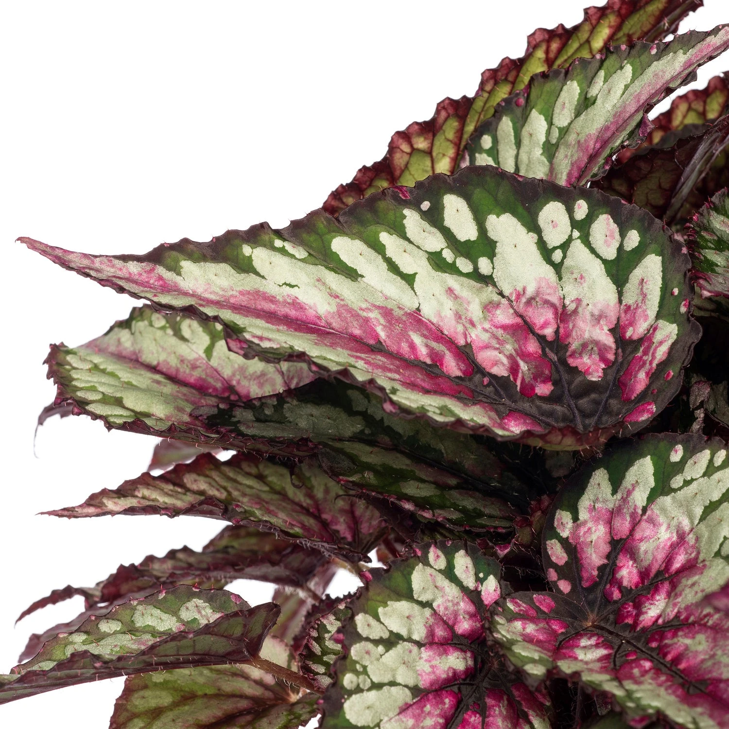 Begonia’s zijn opvallend door hun uitbundige bloei, maar er zijn ook Begonia’s die speciaal gekweekt worden vanwege hun mooie bladeren. Door innovatie van het assortiment heeft de plant zijn oubollige imago van zich afgeschud en heeft hij een plaatsje veroverd tot in de modernste interieurs van de 21e eeuw. De Begonia rex (MC) ‘Salsa’ is een bladbegonia, met opvallend paars, grijs en groen blad wat glinstert in het licht.
