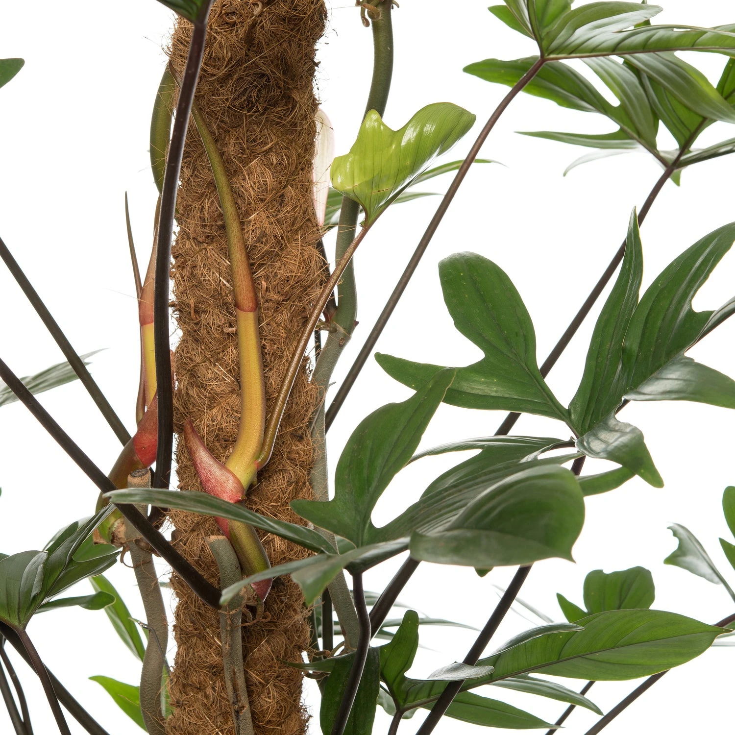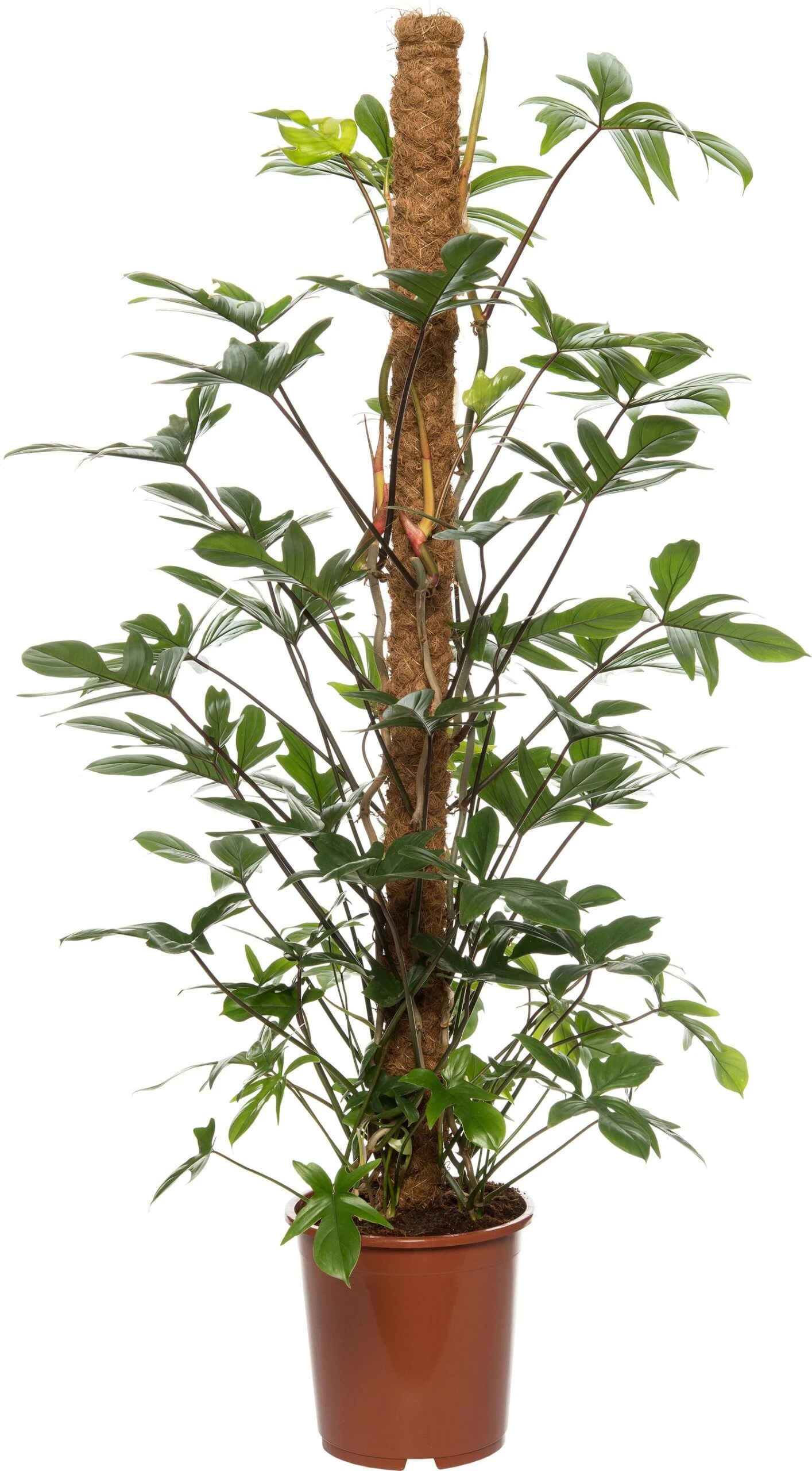 De Philodendron pedatum is een echte klimplant met zeer gelobt blad waardoor het wel geveerd blad lijkt. In het wild groeit deze plant tegen bomen op kan verschikkelijk lange rangen maken. Deze specifieke plant heeft een kokospaal waar hij omhoog groeit. Wordt de plant te hoog dan kan je de uitschieter naar beneden buigen zodat hij weer overnieuw naar boven kan gaan. De steel afknippen is ook een optie, zet deze dan wel op water voor een mooi stekje!